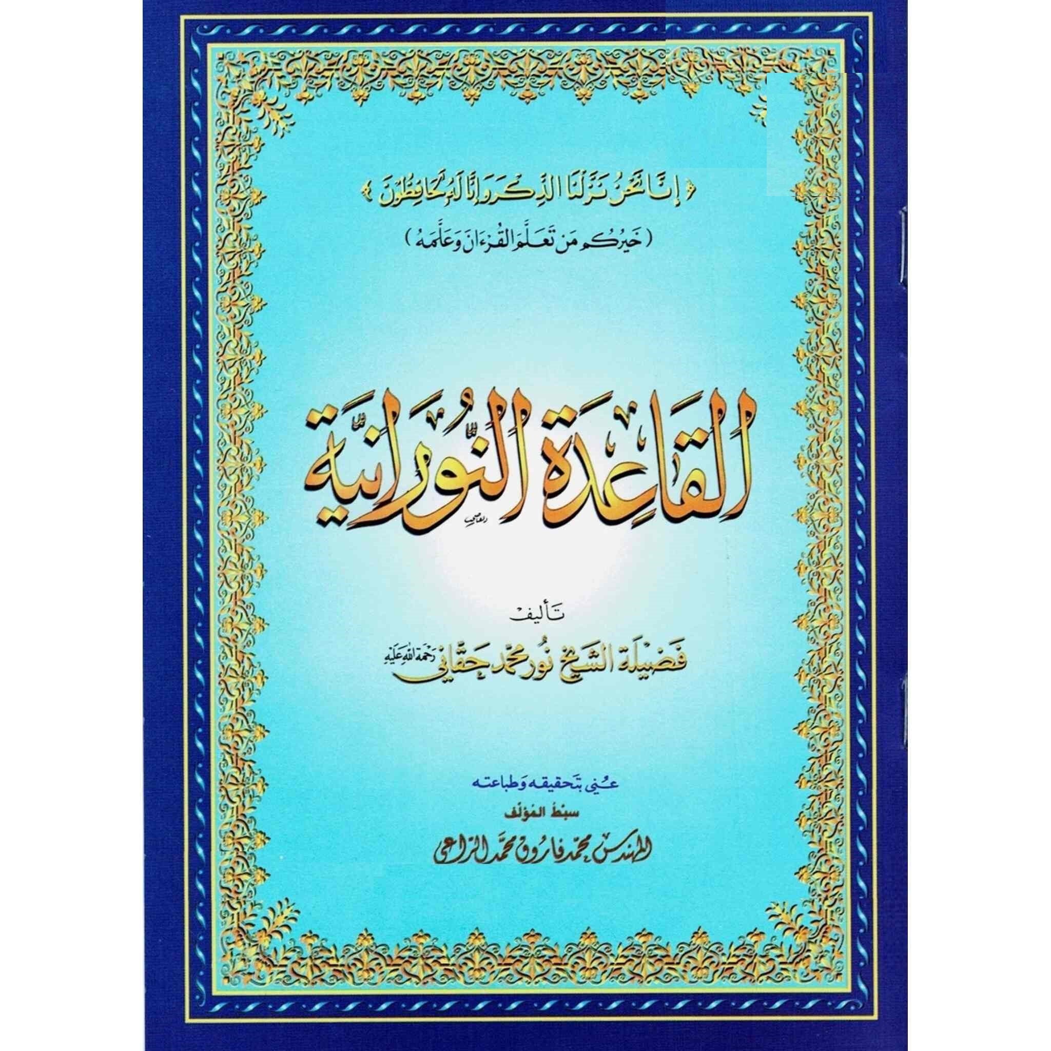 Sheikh Noor Mohammed Haqqani's "Al Qaidah An Noraniah (Regular Book Small Size)" is a widely recognized and highly regarded instructional book designed to assist learners, particularly children, in mastering the fundamentals of Arabic script and pronunciation, with a focus on correct Tajweed (pronunciation) of the Quranic text. This compact edition of the book is intended to be portable and user-friendly for students of all ages. "Al Qaidah An Noraniah" is a fundamental instructional resource for individuals wishing to acquire the Arabic script and Tajweed norms required for authentic Quran reading. The following major aspects distinguish Sheikh Noor Mohammed Haqqani's pedagogical style in this book: